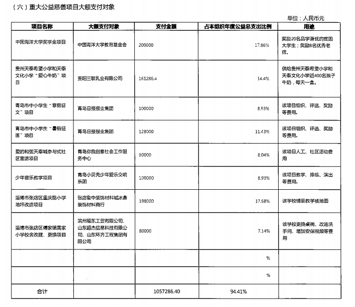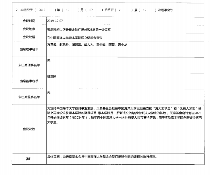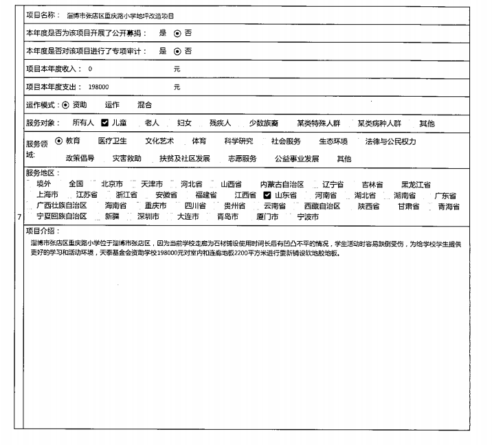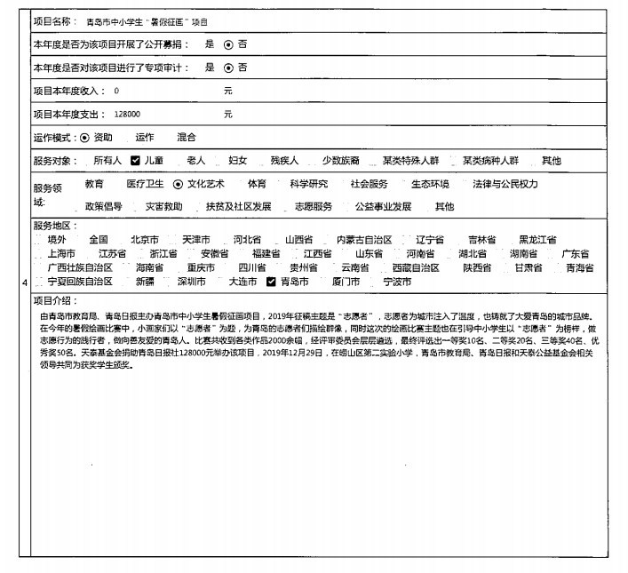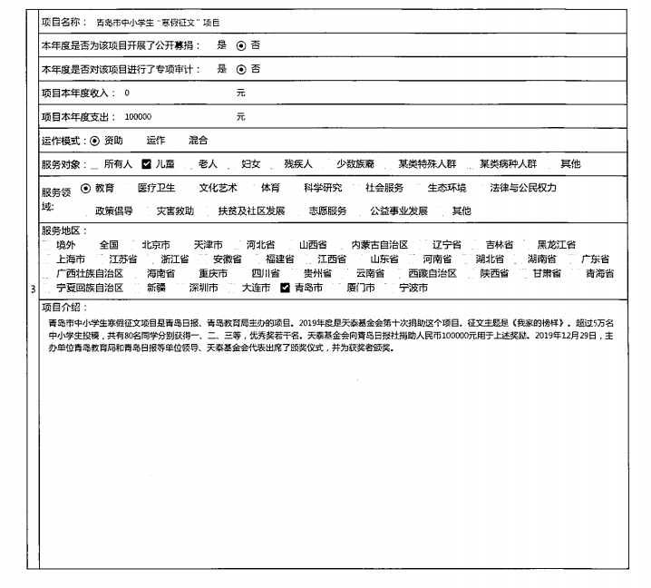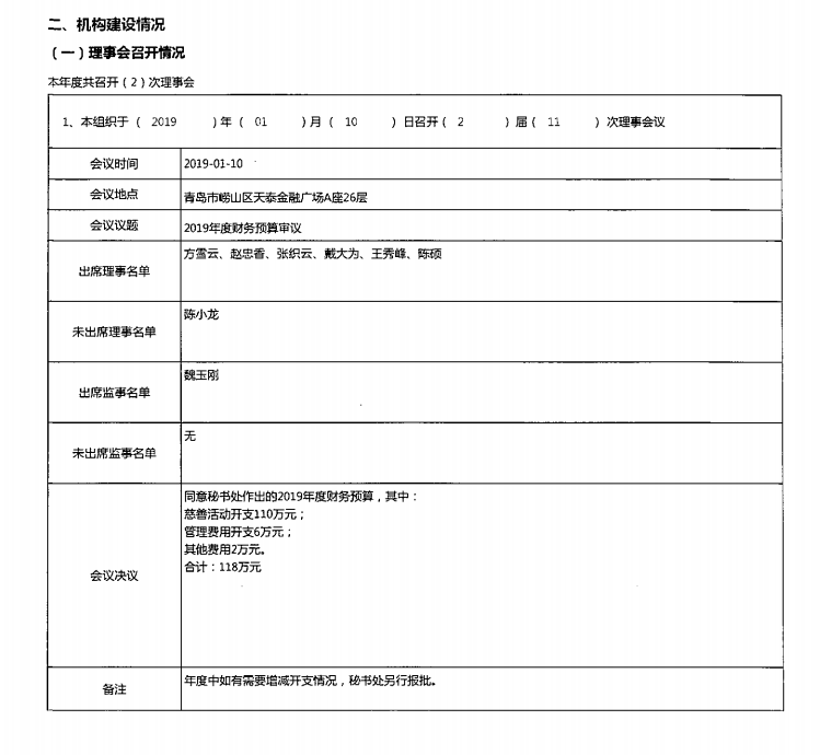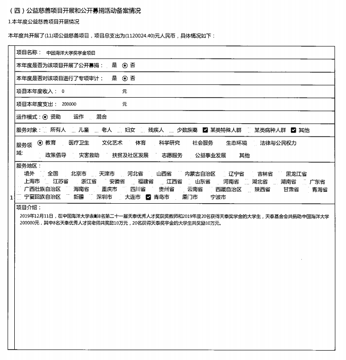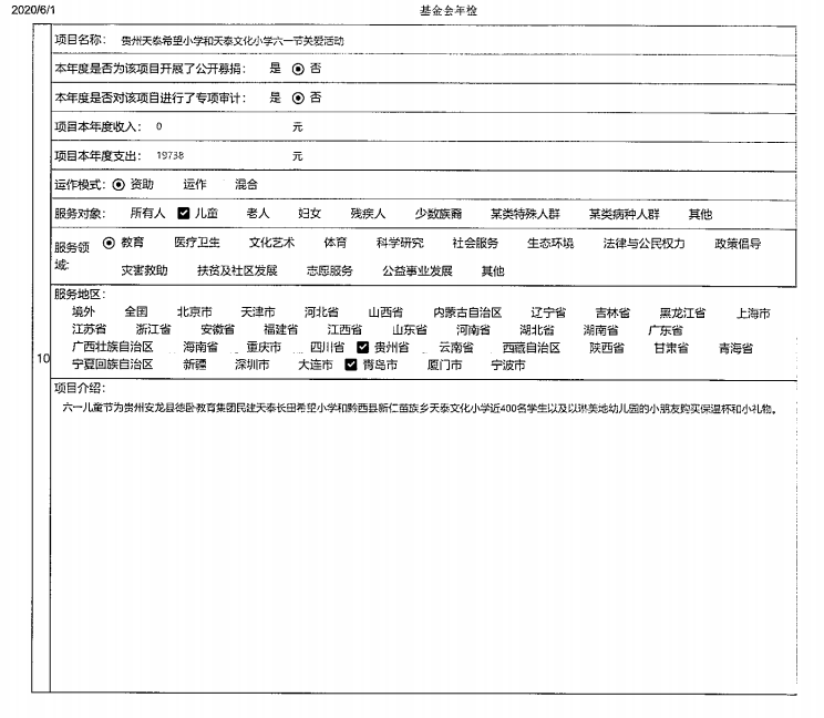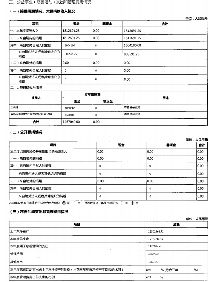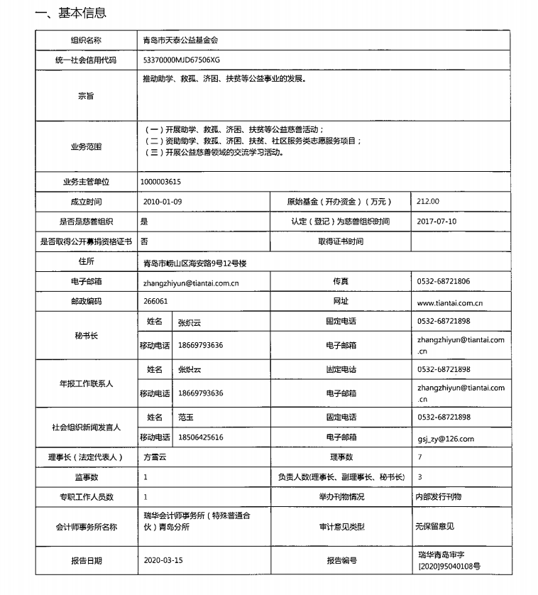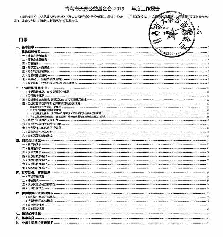 青岛市天泰公益基金会2019年度工作报告
