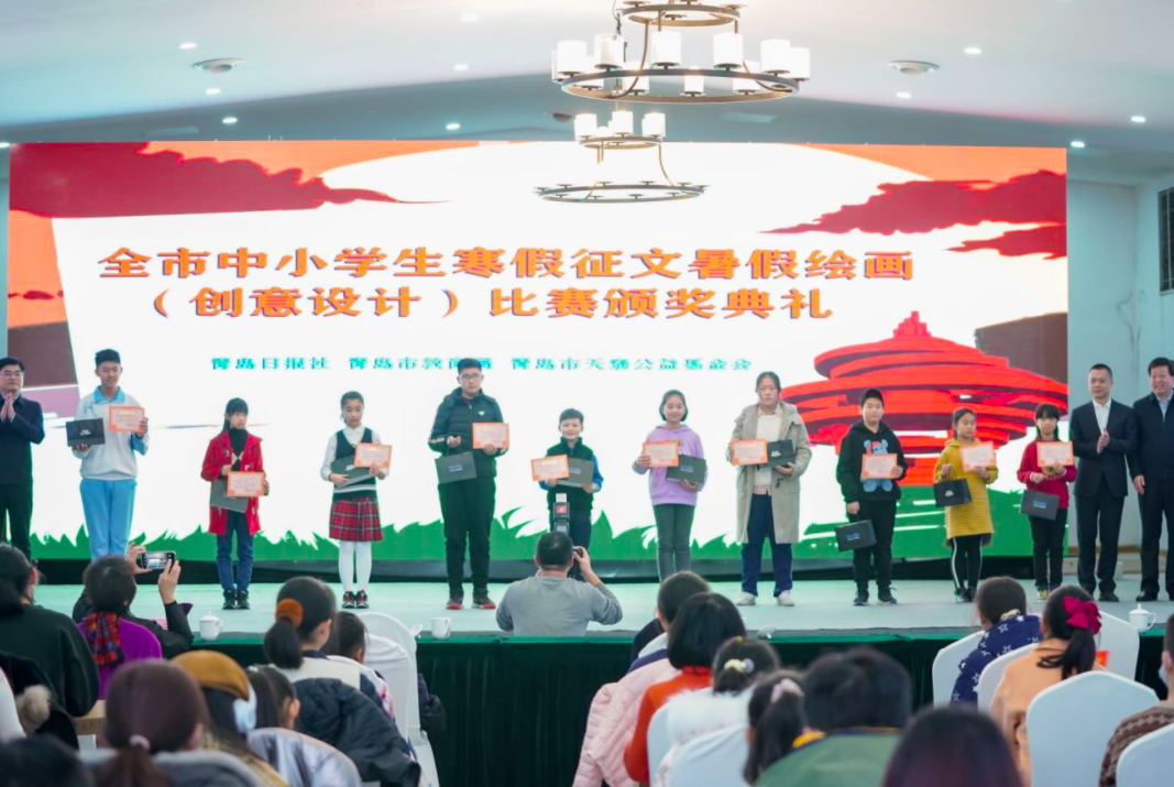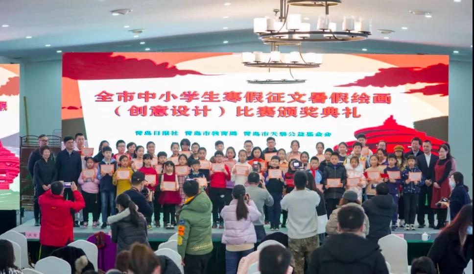12月12日,由天泰公益基金会资助、青岛日报社、青岛市教育局联合主办的全市中小学生寒假征文和暑假绘画(创意设计)比赛两个项目颁奖典礼在LOVEYE天泰山艺术小镇举行,逾200位来自全市的获奖同学们、家长、以及指导老师等莅临现场。