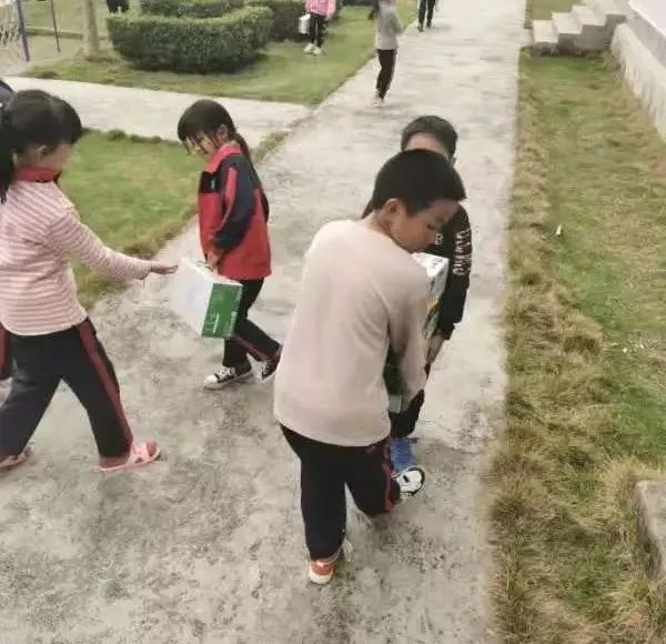 得到消息的孩子们兴冲冲地跑出去,前后接力,充当小小的“牛奶搬运工”,嬉笑打闹间洒下一路的欢声笑语。