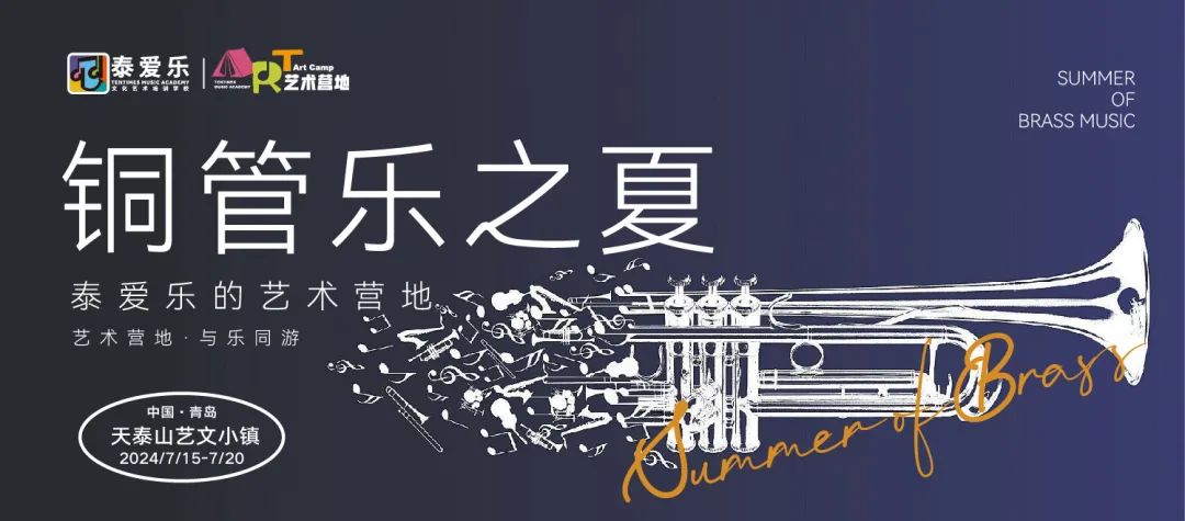 跃动音符,唤醒心灵共鸣!在这个夏天,让音乐与海风相伴,感受铜管乐的魅力;让音乐变成我们的翅膀,飞翔在青岛的蔚蓝天际。2024年7月15至19号,泰爱乐的艺术营地——铜管乐之夏与您相约青岛。