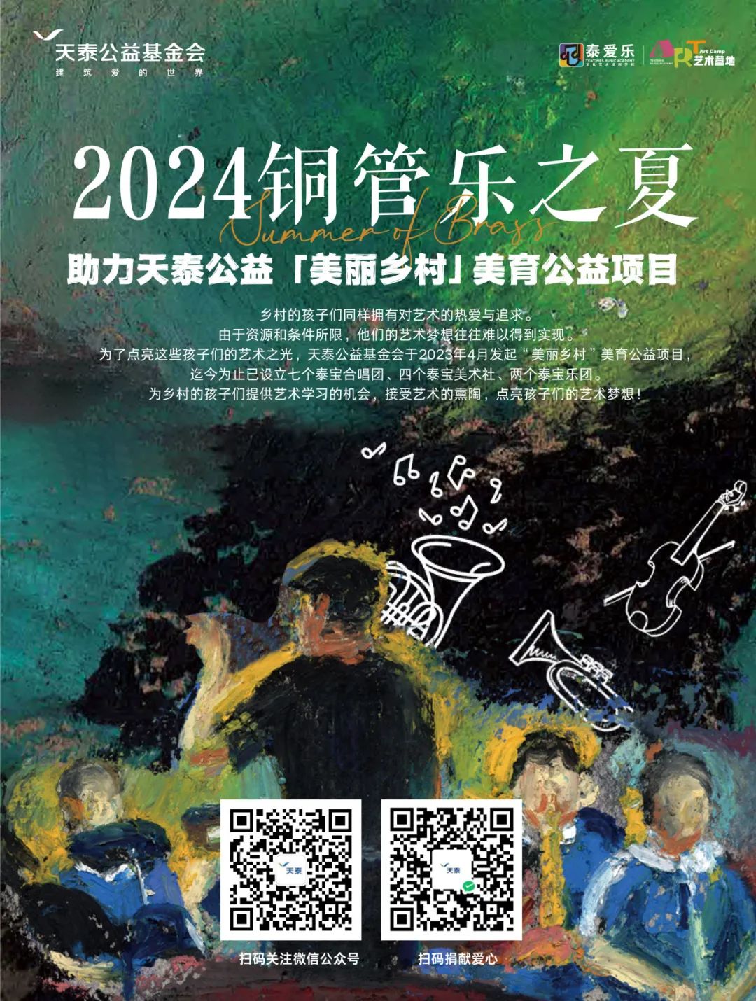 2024铜管乐之夏全体学员,以本次铜管乐之夏音乐会,呼吁社会爱心人士,关注和支持天泰公益“美丽乡村”美育公益项目。