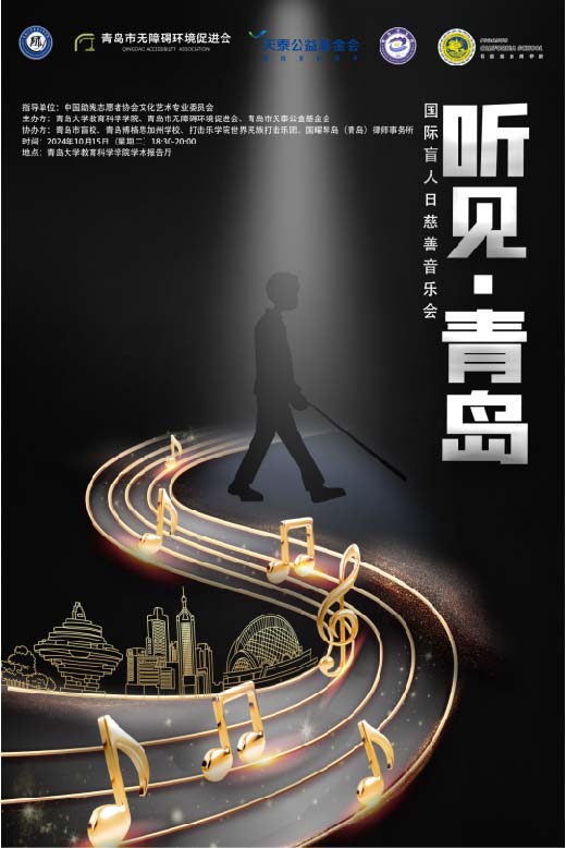 为迎接第四十一个“国际盲人日”,10月15日,在中国助残志愿者协会文化艺术专业委员会的指导下,由青岛大学教育科学学院、青岛市无障碍环境促进会、青岛市天泰公益基金会主办,青岛市盲校、青岛博格思加州学校、国曜琴岛(青岛)律师事务所协办的“听见·青岛”国际盲人节慈善音乐会在青岛大学音乐厅圆满举行。