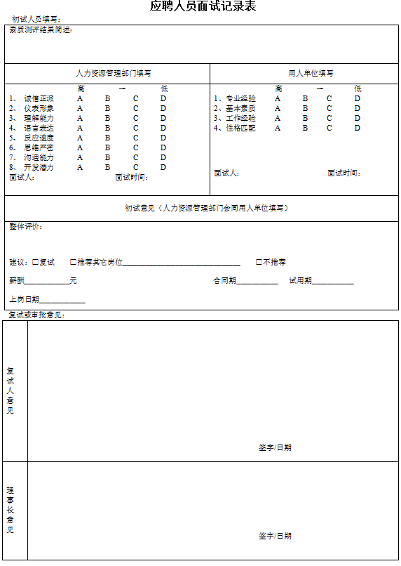 4.1.4通过初试的应聘人员,人力资源处安排相关领导进行复试,需要时,应安排理事长复试。