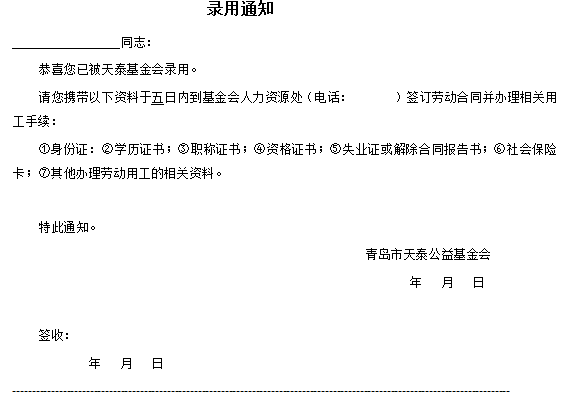 4.1.5通过复试的应聘人员即为拟录用人员,由人力资源处申报该人员薪酬、合同期、试用期,经理事长批准后向录用人员发送《录用通知书》。